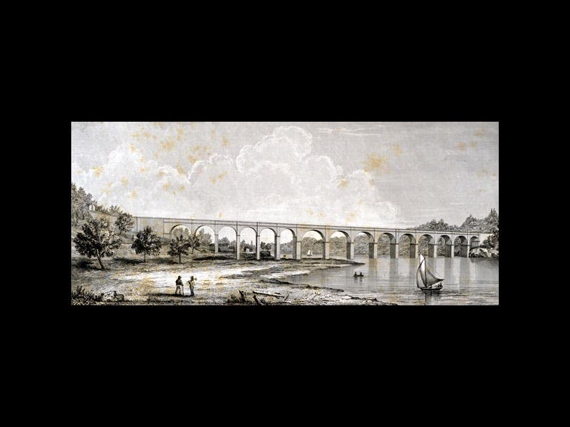 In 1836, Jervis was appointed chief engineer on the Croton Aqueduct project. The aqueduct was to carry water to New York City from the Croton River Dam, some 40 miles away. The construction project involved building the dam, designing several tunnels, a slew of culverts, and a few bridges, with the major bridge spanning the Harlem River, and then constructing everything. It took Jervis only 6 years to accomplish all tasks; the aqueduct opened on Oct. 14, 1842, immediately delivering thirty-five million gallons of water per day to the city. We see above the Harlem High Bridge, part of the aqueduct (third image).