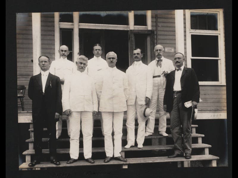 In more placid times, the principal figures in the United States canal effort gathered for a group photo (fourth image above). The chief engineer, George W. Goethals, is in the center, with short white hair and a trimmed mustache, and just to the viewer’s right of Goethals, and a step back, is Gaillard. This photo, and all the others we show here, are on display in our current exhibition, The Land Divided, the World United: Building the Panama Canal, which is now online as well. The link will take you to the section on Gaillard and the Culebra Cut landslides.
