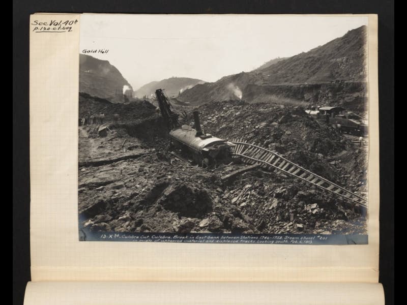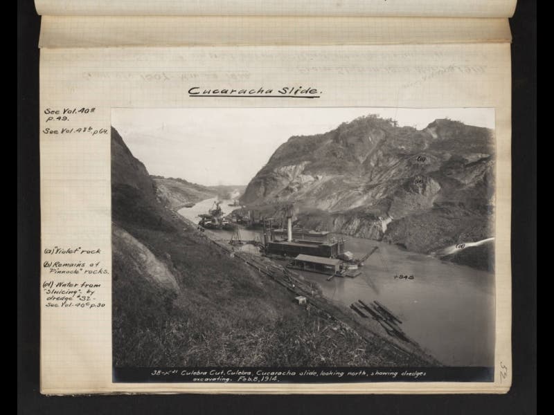 David du Bose Gaillard, a U.S. Army engineer, died Dec. 5, 1913, at age 54. In 1908, he joined the Panama Canal project and was put in charge of the infamous "Culebra Cut". The cut was a nine-mile stretch where the canal had to cut through the mountainous ridge that runs along the Isthmus, parallel to the two coasts. It wasn't much of a ridge, not even 400 feet high at maximum, but since the locks would raise the canal from sea level to a level of only 80 feet, that left a lot of rock and dirt to cut out and haul away. The French had started the cut, and the U.S. contingent had taken it up again in 1904, but it was slow going. The first few years of Gaillard's supervision were not particularly troublesome, but as the cut got deeper, the landslides started, and they just got worse and worse, especially after 1912 (see first three images above). These slides were sometimes so enormous that they would completely block the canal, filling it not only with mud, but with houses, railroads tracks, and locomotives—anything that was in the path of the slides. All Gaillard’s men could do was dig out the mud and continue their dredging, knowing full well that further slides were inevitable.