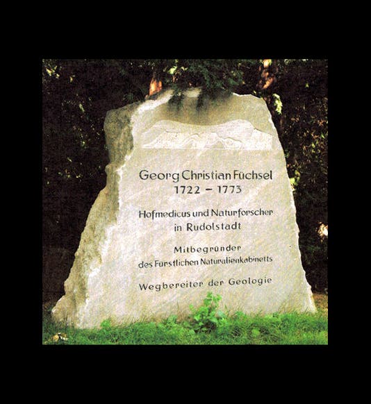 Georg Christian Füchsel, a German geologist, died June 20, 1773, at age 51. Füchsel lived in Thuringia, in the beautiful forest region of central Germany, but his eye was on the rocks beneath, and in 1762 he published a paper in which he was the first to describe what he called a “formation”—a sequence of strata that he thought had been laid down over a long period of time, under changing conditions that could be deduced from the mineral and fossil contents of the strata. In an age when many geologists still believed that fossil-bearing strata were deposited from a single flood, Füchsel’s ideas of “deep time”, and his belief that geological processes in the past were no different from those in the present, is quite remarkable—so much so that his paper passed very much under the radar in the 18th century.