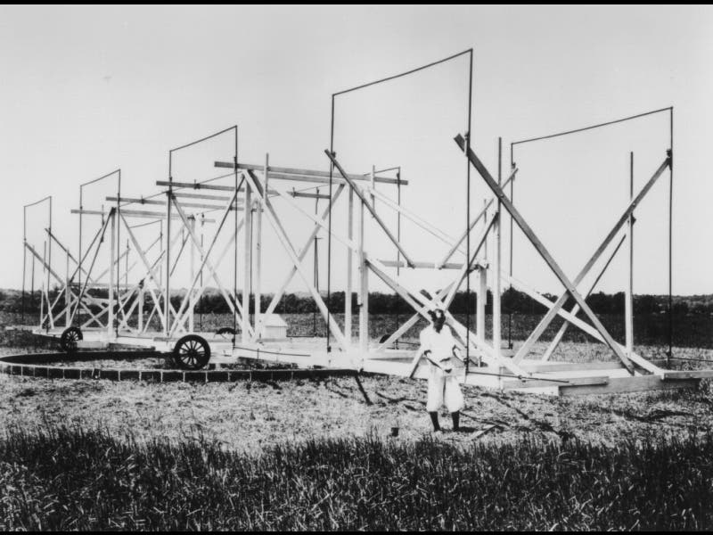 Karl Jansky, an American engineer, was born Oct. 22, 1905. Jansky worked for Bell Labs, and in the early 1930s he was assigned to develop an antenna that could be used for trans-Atlantic short-wave voice communications. He built what would turn out to be the world’s first radio telescope at Holmdel, New Jersey (see first image above). With his antenna, Jansky detected a hiss with a 24 hour cycle, which suggested that it was coming from the sun. However, more precise measurement yielded a cycle of 23 hours 56 minutes, which is what we call a sidereal day. Anything with a sidereal-day cycle comes from outside the solar system, from the stars. Jansky was able to pinpoint the source of the radio noise to the constellation Sagittarius, which lies in the direction of the center of the Milky Way Galaxy. Thus, in 1933, he was able to demonstrate that the Galaxy (or rather, the dust in the Galaxy) emits radio waves, and this marks the beginning of modern radio astronomy.