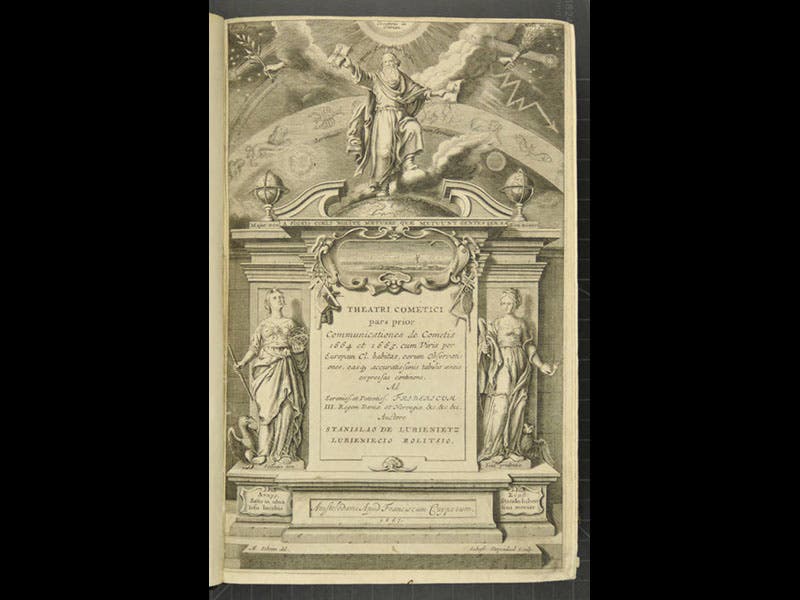 We see above four different views of the comet of 1664-65, as well as the engraved titlepage to his book, and a portrait of Lubieniecki.