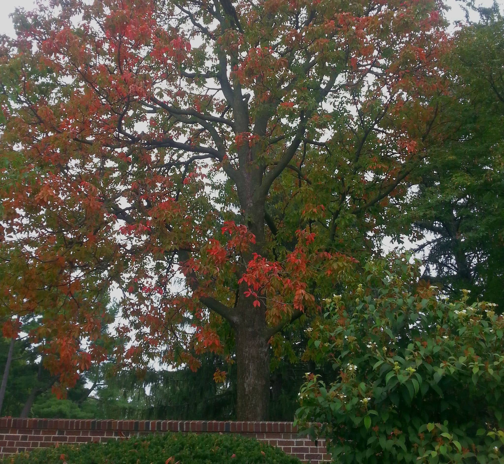 The harbinger of fall at the Linda Hall Library is the Ohio Buckeye tree. While there are five Ohio Buckeyes on our grounds, only one (pictured) shows fall color, and is always the first tree on our grounds to begin showing color. The Ohio Buckeye is the State Tree of Ohio. Kansas City is in its native range, which includes most of the upper Midwest from far western Pennsylvania to eastern Kansas, Oklahoma and northeastern and central Texas. The nuts, called buckeyes, are poisonous to livestock and humans, but considered good luck charms in many regions of the United States.