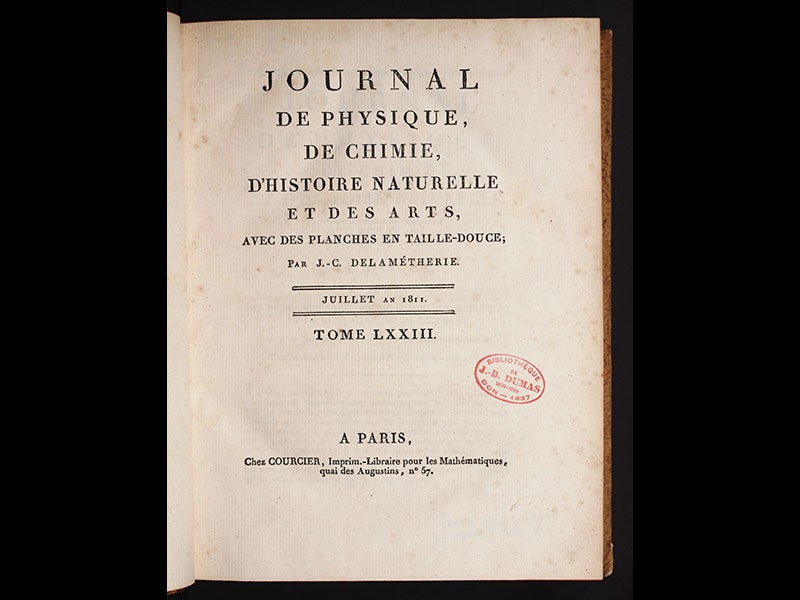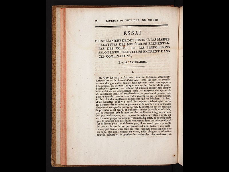 Most chemists have never seen Avogadro’s original paper, so we display above the title page of volume 73 of the Journal de Physique for 1811, which we have in our serials collection, and the first page of Avogadro’s article. The portrait is from the Edgar Smith collection at the University of Pennsylvania, and the restaurant (fifth image), in Fort Collins, Colorado, is just cool.