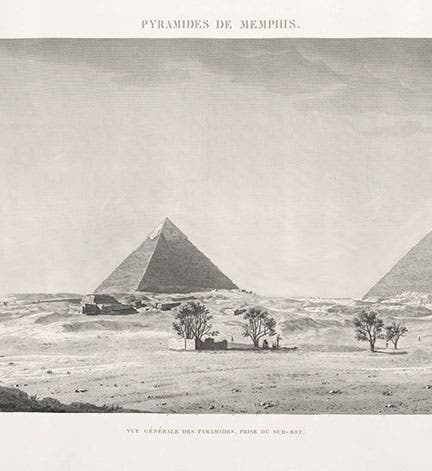 André Dutertre, a French artist, was born June 9, 1753. Dutertre accompanied Napoleon Bonaparte on his invasion of Egypt in 1798. He was supposed to be sketching irrigation machinery, glass-making factories, and canal boats (which he did, to some extent, see fifth image), but when he and the scientific corps discovered the antiquities of Egypt, there was no holding them back. Many of the engravings in the Description de l’Egypte (1809-28) were based on Dutertre drawings, such as the plates depicting the pyramids at Giza (first image), the sand-filled interior of the temple at Karnak (second image), the temple at Dendera, where the stone zodiac was found (third image), and a ruined colossus at Karnak (fourth image)--note the artist contemplating the statue, perhaps Dutertre placing himself within the scene.