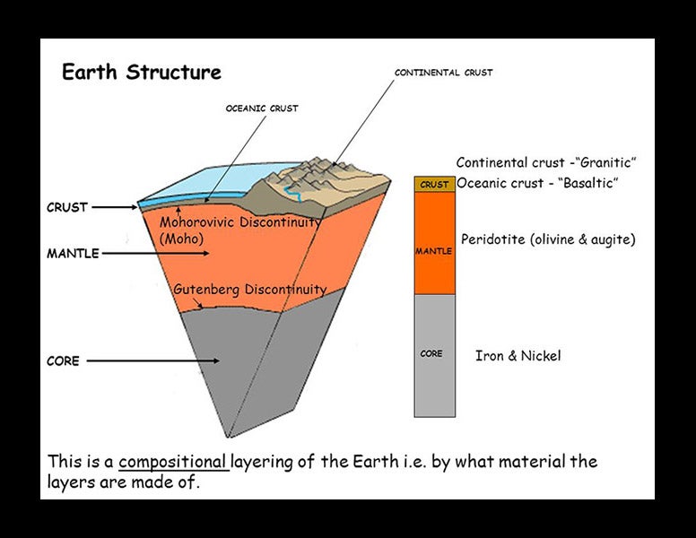Gutenberg does, however, have something named after him. One of the studies Gutenberg and Richer undertook was to examine how seismic waves bounce off interior layers of the earth, and one of the regions where there is a pronounced reflection of seismic waves is the boundary between the earth's mantle and the outer core. This discontinuity (called such because it is a sharp transition) is now known as the Gutenberg discontinuity, just as the boundary between crust and mantle is known as the Mohorovicic discontinuity (fourth image). The crust-mantle boundary, because it is such a mouthful, is usually referred to as the "Moho". Analogically, the Gutenberg discontinuity ought to be known--but is not--as the "Beno".