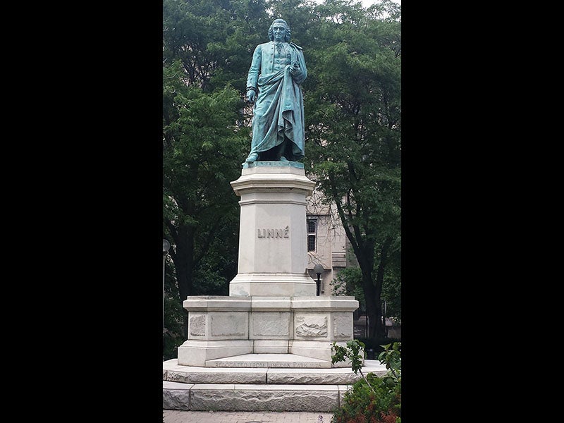 The two portraits show Linnaeus at age 32 (first image) and 67 (fourth image). There are many statues of Linnaeus scattered about; this one (fifth image) is on the campus of the University of Chicago.
