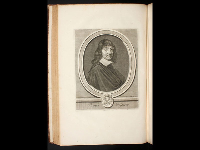 Charles was more interested in arts and letters than the sciences, playing a principal role in the famous “Quarrel of the ancients and moderns” that occupied the Académie française during the late 17th century. But Charles did provide an important contribution to the history of seventeenth-century science by publishing a book of portraits of eminent French savants in 1696 (see second image above). This is a large, two-volume folio set that we have in our History of Science Collection, and it is an invaluable source of portraits of such distinguished French natural philosophers as René Descartes (third image), Marin Mersenne (fourth image), Blaise Pascal (fifth image), and Charles’ brother Claude (sixth image). The frontispiece of this book also provides us our best portrait of Charles (first image).
