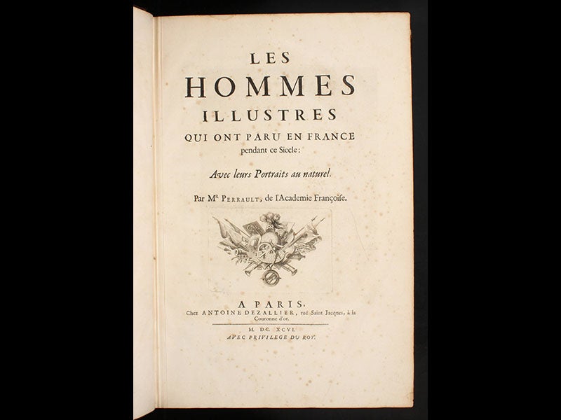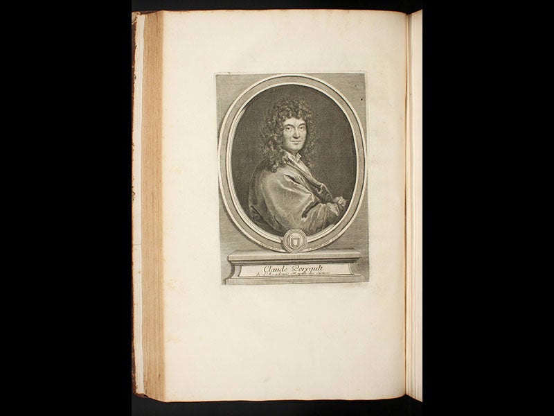 Charles Perrault, a French scholar and writer, was born Jan. 12, 1628. Charles was part of a distinguished scientific family. His younger brother, Claude, was an original member of the French Academy of Sciences and a founder of the science of comparative anatomy; his large folio, Memoirs for a Natural History of Animals (1676), was the millionth book purchased by the Library, and we displayed it in our Grandeur of Life exhibition in 2009. Another brother, Pierre, was a founder of the science of hydrology (the movement of water on and within the earth), and we have his Origin of Springs (1674) in our collection as well.