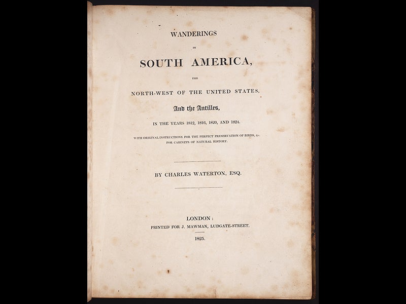 Charles Waterton, a British naturalist and collector, was born June 3, 1782. Waterton made four trips to South America between 1812 and 1824 to collect specimens, and he must have stopped in Philadelphia on his last trip, for there is a portrait of Waterton, painted in 1824 by Charles Willson Peale, in the National Portrait Gallery (second image). Waterton then wrote and published Wanderings in South America (1825), which introduced many Englishmen (including Charles Darwin and A.R. Wallace) to the wonders of the tropics.