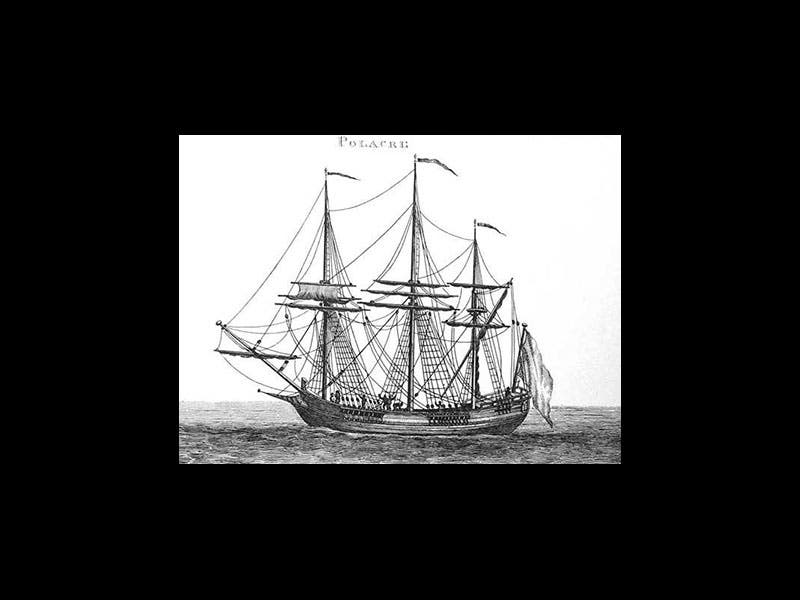 David Steel, an English bookseller, publisher, and author on maritime topics, died Jan. 19, 1803, at age 40. We know very little about Steel; what we do know comes solely from an obituary notice in The Gentleman's Magazine. But we do learn here that Steel collaborated with his father (about whom we know nothing) to publish The Elements and Practice of Rigging and Seamanship (1794). About the book we know a great deal. This is a large, handsome, two-volume work about ships, rigging, sails, and pulley blocks, illustrated with a copious number of very detailed engravings. Steel’s volumes are THE guide to ship-rigging in the Age of Nelson, and as such the set is highly sought after by maritime historians and model ship builders. It was often revised and reprinted, and several facsimiles have been published. Here in the Library we unexpectedly have a fine copy of the two-volume first edition. We have not digitized out copy, so the illustrations above come from online sources. We see a plate with 7 various ships with their rigging (first image); an offering from a rare book dealer's catalog, with a view of the spines of the two volumes, the frontispiece, and the title page (second image); a polacre (a bark) fully rigged (third image); a plate showing 6 types of sails (fourth image); and a curious folding plate containing a compass rose volvelle, with a moveable ship serving as pointer.