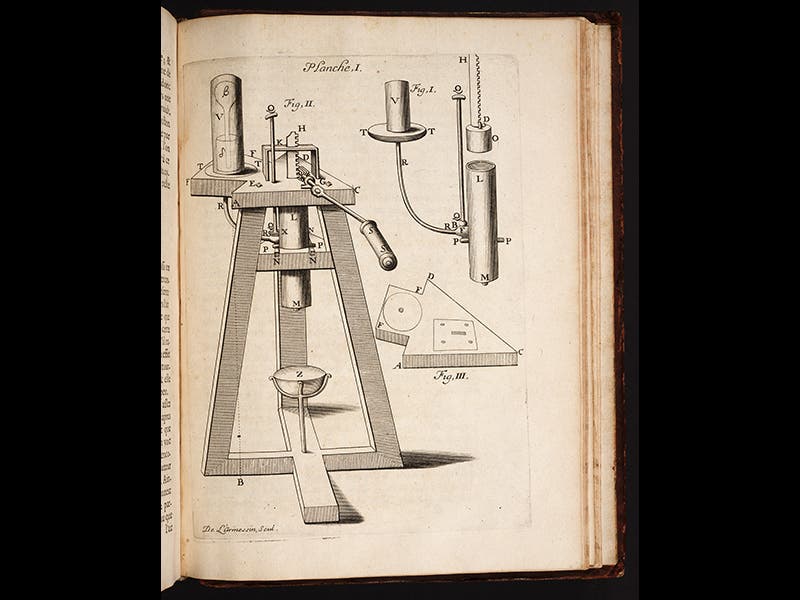 Denis Papin, a French inventor, was born Aug. 22, 1647. Papin was a gifted machine craftsman, and he became an assistant to Christiaan Huygens in Paris in the 1670s, building vacuum pumps. He published a book on the subject in 1674, Nouvelles experiences du vide (New Experiments on the Vacuum), which we have in our collections, and from which the first image above is drawn.