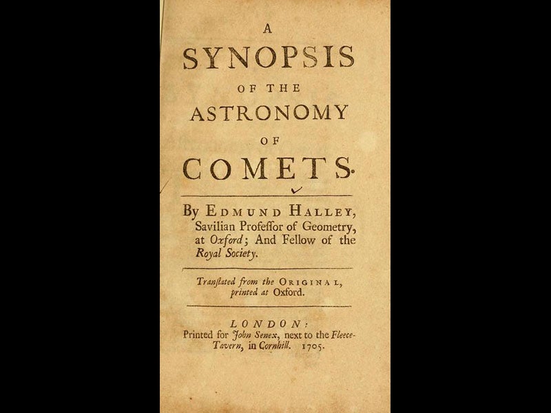 There are many portraits of Halley in the National Portrait Gallery in London. This one (fifth image), by Richard Phillips, painted in 1722, is the one most widely reproduced. We do not own Halley’s Synopsis; the copy shown is in the Smithsonian Institution Libraries.