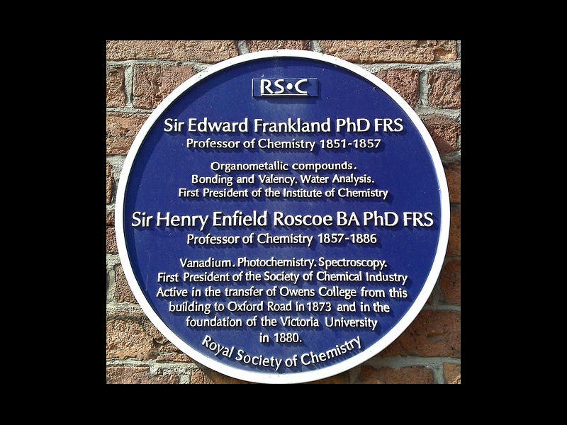There is a lovely Woodburytype of Frankland in the National Portrait Gallery in London (NPG), made about 1880 (first image). The NPG also has a Woodburytype of the founder of the X-Club, T.H. Huxley, made about the same time (second image). And Frankland shares a blue plaque with another prominent Victorian chemist, Sir Henry Roscoe, on a wall at the University of Manchester, where Frankland taught for 6 years (third image).