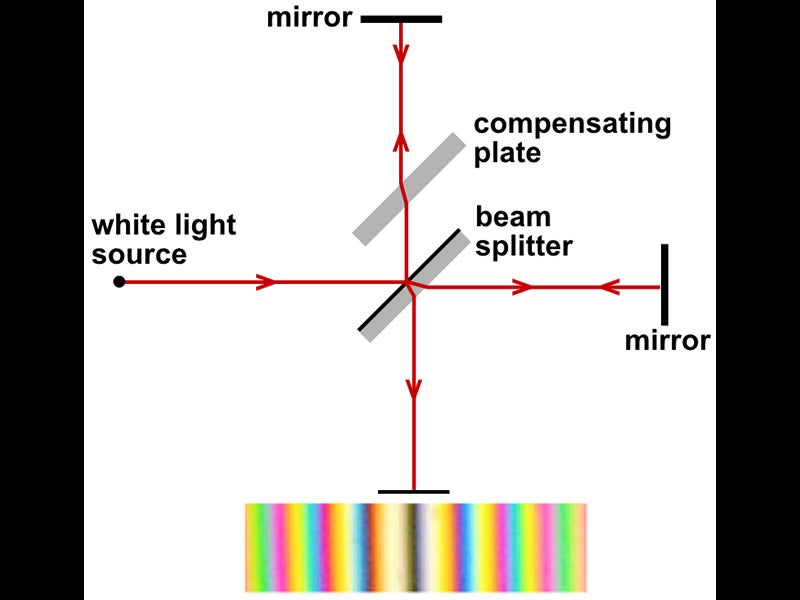Edward Morley, an American chemist, was born Jan. 29, 1838. His name is familiar to most scientists as the hind member of the Michelson-Morley experiment, the most famous failed experiment in history. Albert Michelson was a physicist at the Case School of Applied Science in Cleveland, where he met Morley, who taught chemistry at Western Reserve University, also in Cleveland. They were interested in trying to measure the speed of the earth through the "luminiferous ether," a medium, thought to pervade the entire universe, through which light waves "waved" (just as air provides the medium for sound waves, and rock for seismic waves). If the ether fills the universe, then the earth must move through it, and the experiment was designed to detect this motion, sometimes called the “ether drift”. Carried out in 1887, it involved sending light-waves out in two perpendicular directions, reflecting them back, allowing them to interfere with one another to produce interference fringes, and then slowly rotating the apparatus 90º and measuring how much the fringes changed as the direction of the ether drift changed. You can see a photograph of the apparatus above, mounted on a large stone slab that rotated in a tub of mercury (see first image), as well as a diagram of the setup of the interferometer (second image), and a diagram of the light paths that produce the interference fringes (third image).