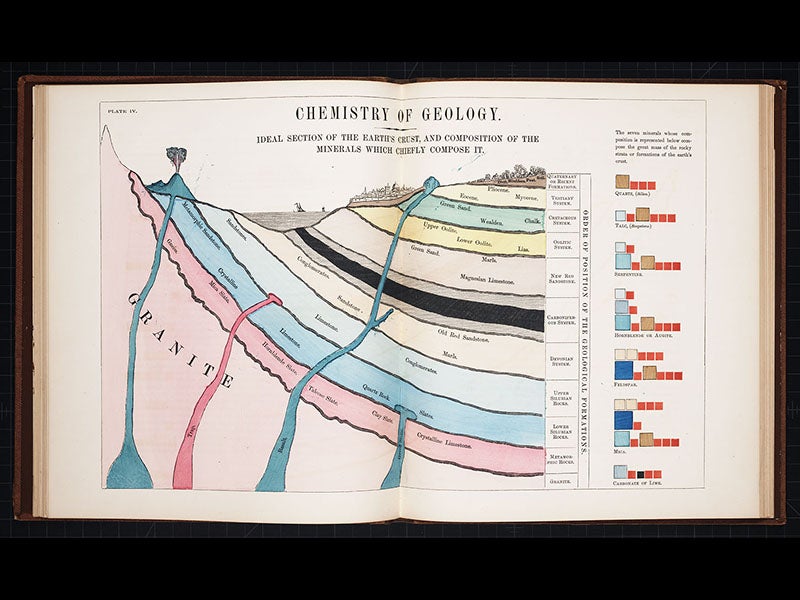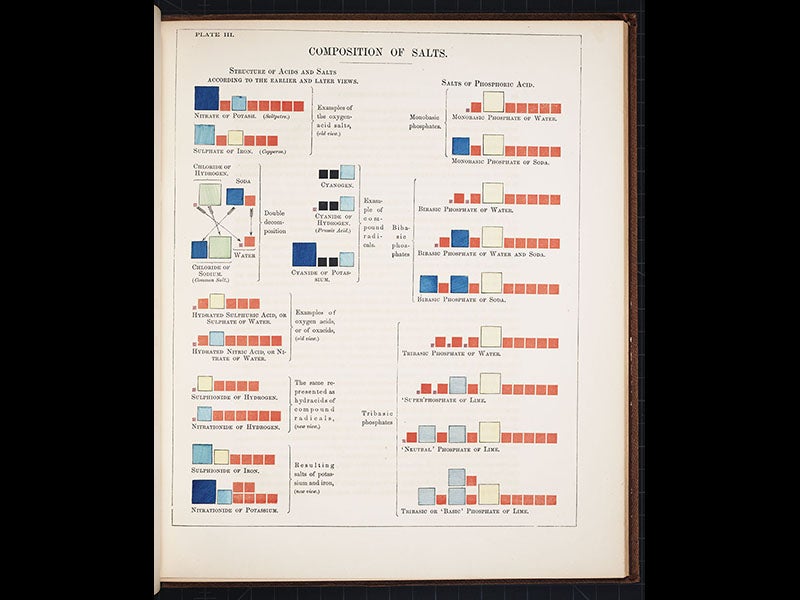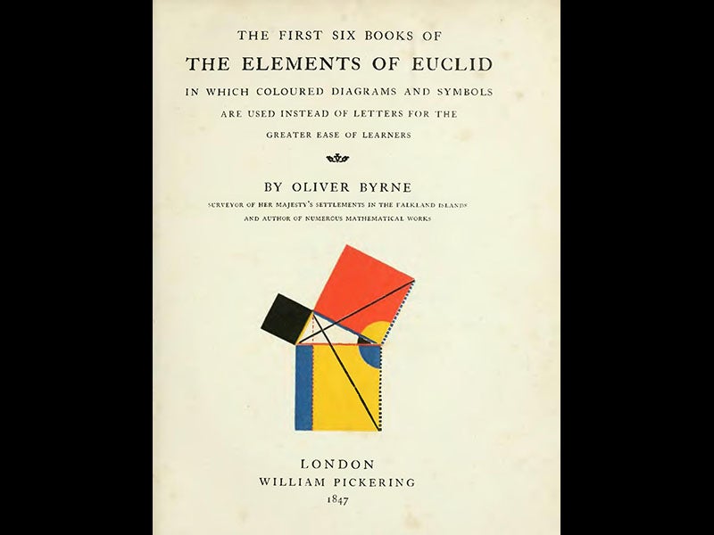 Edward Youmans, an American scientific writer, was born June 3, 1821. Youmans suffered from ophthalmia and was nearly blind for much of his life, but he was a self-taught lover of science who came to believe that the American public was being denied part of its heritage with a lack of education in the sciences. So in 1872, Youmans founded Popular Science Monthly, the first magazine intended to provide scientific information for the general public. It was astonishingly successful, contrary to the expectations of most publishing gurus of the time, with a circulation of up to 18,000 during Youmans' 15-year tenure as editor. One of the most frequent writers for the Monthly was the sociologist Herbert Spencer; indeed, it was through Youmans' magazine that Spencer became so famous in the United States. But we feature today a book that Youmans published before undertaking his editorial career; it is called Chemical Atlas; or, the Chemistry of Familiar Objects (1854; we have the 1857 edition in our Library). This book is unusual in the way it uses color to bring to life clear and simple scientific illustrations, and to convey quantitative information. There are 13 plates in the book; the ones shown above depict, in order: “The Structure of a Flame”; “The Chemistry of Geology”; “The Composition of Salts”; “Plants, Animals, and the Air”; and “Metalloids and their Compounds”. It has often been remarked that Youmans must have been inspired by the Oliver Byrne edition of Euclid’s Elements (1847), which was innovative in its use of color to convey geometrical information (last image above). We will feature this beautiful book when Byrne’s anniversary rolls around next Dec. 9. Dr. William B. Ashworth, Jr., Consultant for the History of Science, Linda Hall Library and Associate Professor, Department of History, University of Missouri-Kansas City. Comments or corrections are welcome; please direct to ashworthw@umkc.edu.