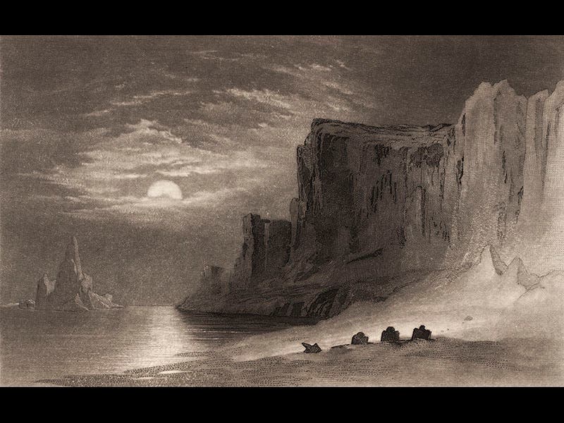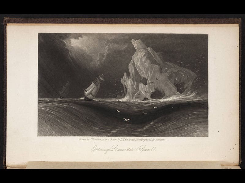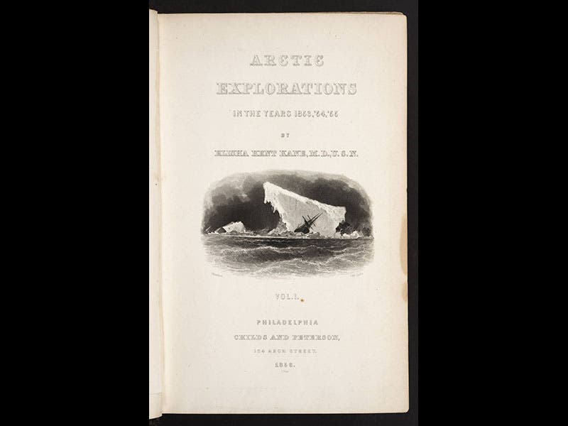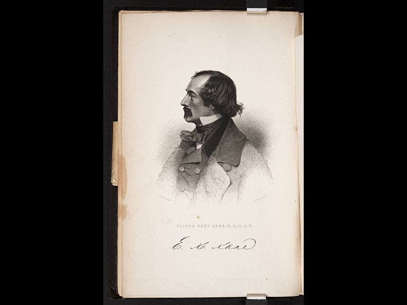Elisha Kent Kane, an American surgeon and explorer, died Feb. 16, 1857. Kane participated in two Arctic voyages in search of the missing Franklin expedition. Both voyages were sponsored by an American businessman, Henry Grinnell, who bought the ships and provided them to the U.S. Navy, and so the two voyages are often referred to as the First and Second Grinnell Expeditions. On the first, 1850-51, Kane was the ship's surgeon on the Advance, but it was Kane who published the narrative in 1854, written with great flare and illustrated with dramatic engravings, the most famous being an image of three Franklin graves discovered by Kane and two others on Beechey Island in 1850 (first image).