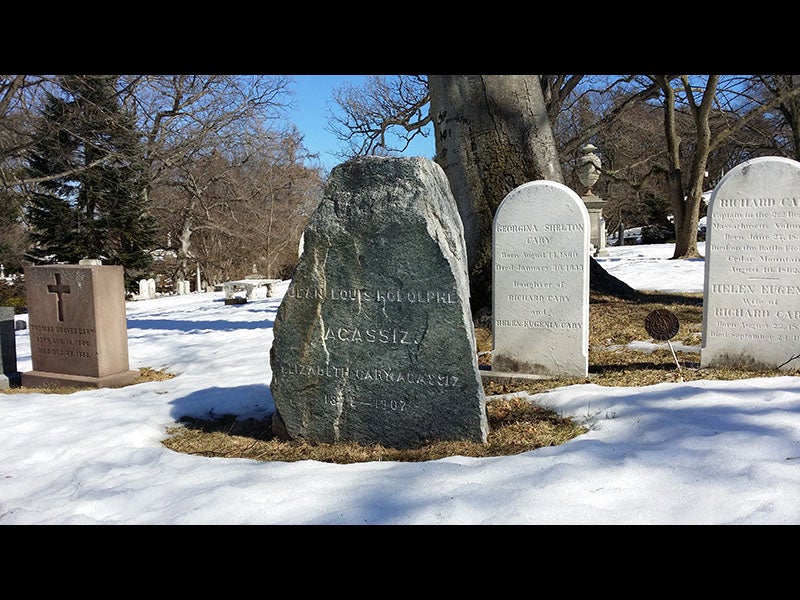 Elizabeth is buried with Louis Agassiz in Mount Auburn Cemetery in Cambridge, underneath the glacial erratic boulder that Louis chose to represent his discovery of the Ice Ages (fifth image). Even in death Elizabeth was eclipsed by her husband, although there is little doubt who was the finer human being. Her portrait hangs in the Radcliffe Institute for Advanced Study (first image), and she has a building named after her in Radcliffe Yard at Harvard (sixth image).