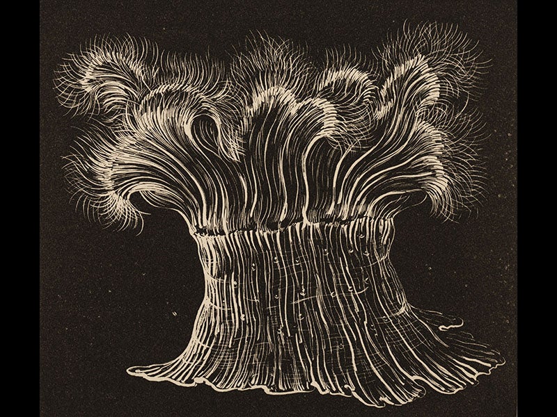 Elizabeth’s popular natural history books have been generally overlooked, but Seaside Studies in Natural History (1865; fourth image), which she wrote with her son Alexander, is quite readable and attractive, with its many delicate wood engravings of coastal marine invertebrates, such as anemones (second image) and jellyfish (third image).