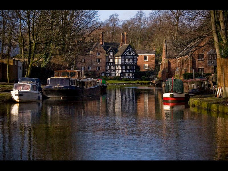 The Duke found the best engineer available, James Brindley, and gave him the task of making reality out of a pipedream. Brindley did so, finishing the project in 1761, and his most brilliant touch was running the Bridgewater canal over the river Irwell on an aqueduct, called the Barton aqueduct, which stunned everyone, since it seemed to all the engineers (except Brindley) that an airborne canal was impossible (second image). Brindley designed his canal to accommodate narrowboats with dimensions no greater than 70 feet long by 7 feet wide (third image). This would set the standard for future canals, which were begun immediately, and continued right up until 1830. Then, just as suddenly, men started building railroads, and the Canal Age was over.