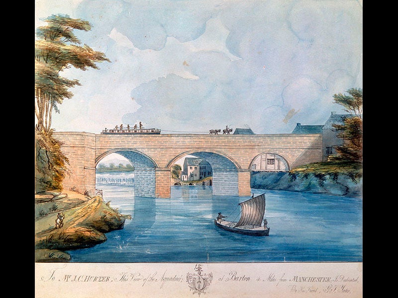 Francis Egerton, the 3rd Duke (and 6th Earl) of Bridgewater, died Mar. 8, 1803, at the age of 66. The Duke was the driving force behind the first true canal in Great Britain, aptly called the Bridgewater Canal. The Duke owned coal mines in Worsley, and delivering the coal to nearby Manchester had always been a problem. It occurred to the Duke that not only could the coal be conveyed much more economically by water, but it should be possible to run the canal right into the coal seams, underground, so the coal could be mined and shipped out in one fell swoop.