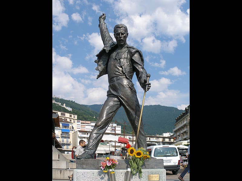 Like too many rock stars, Freddie died young; he is memorialized with a dynamic bronze statue in, or all places, Montreux, Switzerland, along the shore of Lake Geneva (fifth image).