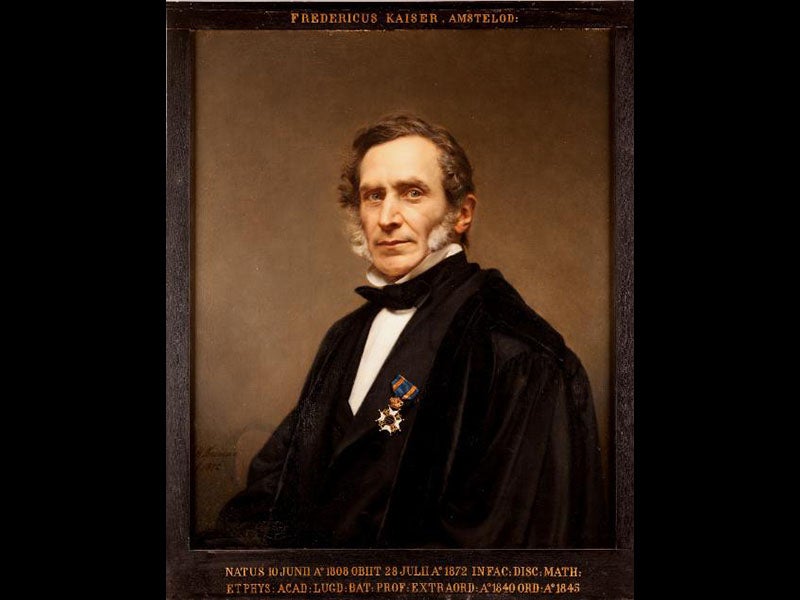 Unfortunately for Kaiser, at the same time that Green compiled his map using Proctor's nomenclature, Giovanni Schiaparelli prepared his own Martian map using a different nomenclature of his own design, where the features on Mars were named using terms from classical Earth geography, and in his system, the Kaiser Sea became "Syrtis Major." The third image above is a detail from Schiaparelli's 1877 map--the same map that gave us our first glimpse of the Martian "canals"—and you can see Syrtis Major, formerly the Kaiser Sea, clearly labelled. The Schiaparelli system came to prevail and Proctor's nomenclature faded from use, which was too bad for Kaiser, for in modern photographs of Mars, the former Kaiser Sea is just about the most prominent feature you will see. In a view from the Hubble Space Telescope (fourth image), the large dark feature at lower center that looks like an inverted Africa is Syrtis Major. It could have been Kaiser’s greatest memorial. Instead, we have to settle for an oil portrait at Leiden University; fortunately, it is a nice one (fifth image).
