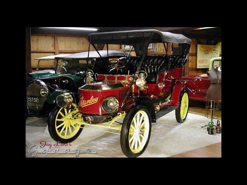 Nevertheless, there are lots of Stanley steamers still around, in museums, in the garages of collectors, like Jay Leno (fourth image), and even on the road. If you would like to see a Stanley steamer in operation, here is one video. In spite of what the narrator says, there is no evidence that the lengthy time it took to start a steamer contributed to its demise. It wasn’t so easy to start a Model T either.