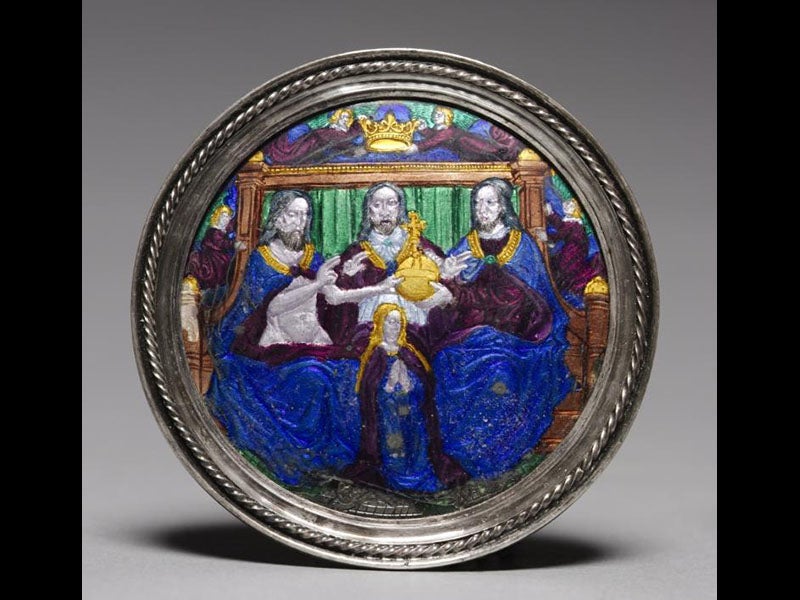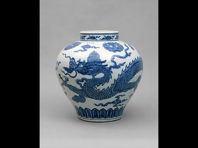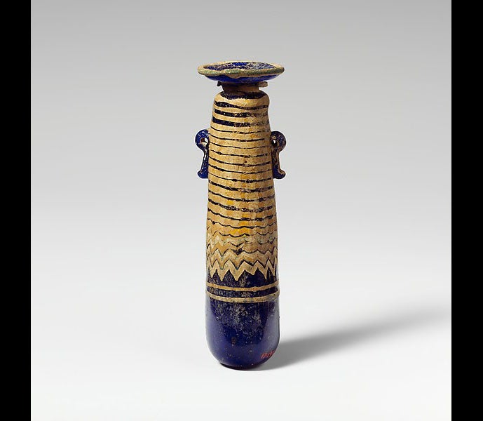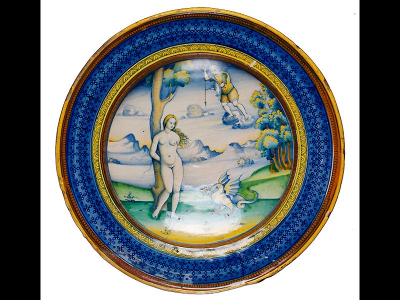 Since we have no images of Brandt or his laboratory, and since cobalt the element is a dull gray, our images are drawn from cobalt the pigment, and show, in order: a 9th-century Tang dynasty jar and a 15th-century French enamel medallion, both in the Cleveland Museum of Art; an ancient Greek perfume bottle and a Ming vase, both in the Museum of Modern Art; and a 16th-century maiolica plate in the Victoria and Albert Museum. Cobalt blue was in use long before anyone knew that it was the gift of cobalt.