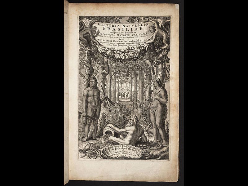 The Natural History of Brazil was published about the time Joannes Jonston was compiling his Natural History. We featured Jonston as our Scientist of the Day just last week, where we mentioned that Jonston created a new kind of natural history by limiting himself to brief descriptions and leaving out all the adagial and emblematic baggage that afflicted earlier natural histories, such as that of Ulisse Aldrovandi. Since Jonston read the Natural History of Brazil thoroughly, and included nearly all of Markgraf's images in his own encyclopedia, it is very possible that Jonston got the idea for his streamlined descriptions from Markgraf as well. In which case, Markgraf deserves more credit than he is commonly afforded as a founder of modern descriptive zoology.