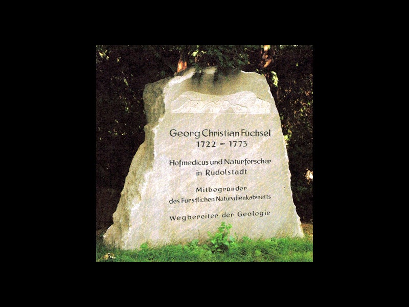 Georg Christian Füchsel, a German geologist, died June 20, 1773, at age 51. Füchsel lived in Thuringia, in the beautiful forest region of central Germany, but his eye was on the rocks beneath, and in 1762 he published a paper in which he was the first to describe what he called a “formation”—a sequence of strata that he thought had been laid down over a long period of time, under changing conditions that could be deduced from the mineral and fossil contents of the strata. In an age when many geologists still believed that fossil-bearing strata were deposited from a single flood, Füchsel’s ideas of “deep time”, and his belief that geological processes in the past were no different from those in the present, is quite remarkable—so much so that his paper passed very much under the radar in the 18th century.