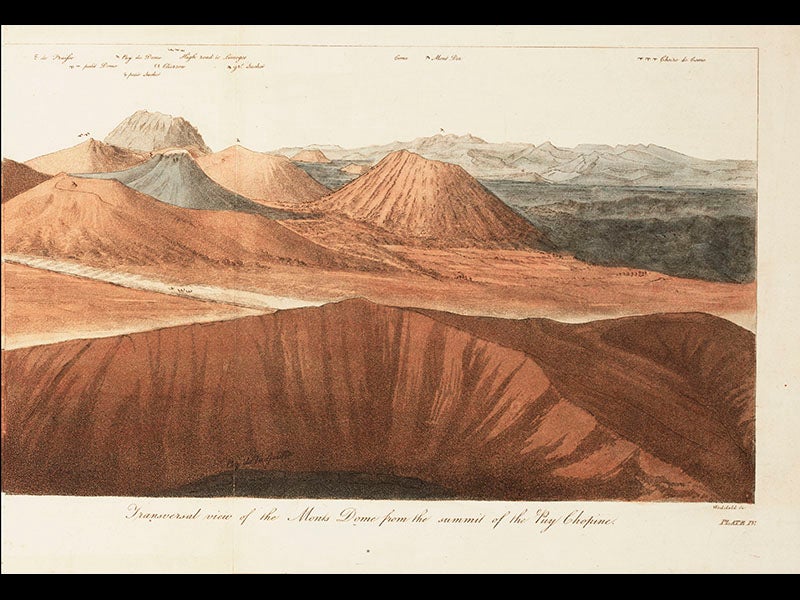 Scrope came to conclude that the Auvergne, Velay, and Vivarais regions had formed from volcanic processes over a very long period of time, and his ideas on the immensity of geological time were taken up by Charles Lyell, when he put forward his principle of uniformitarianism in 1830. We displayed Scrope's book in our 2004 exhibition, Vulcan's Forge and Fingal's Cave.