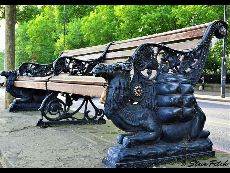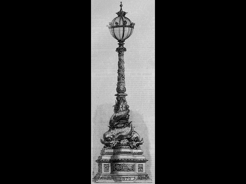 George Vulliamy, an English architect, was born May 19, 1817. In late 19th-century France, we find a number of notable animaliers--sculptors who took to creating life-like animals in bronze. Vulliamy was that rare animalier who was English, who worked in cast iron, and who wasn't even, professionally, a sculptor. He came from a distinguished line of London clockmakers, but by 1861 he had somehow ended up as chief architect for the Metropolitan Board of Works (MBW), a newly created governmental body (1855) that was then grappling with the task of creating a sewer system for London. One of the outgrowths of the sewer project was the construction of a new embankment on the north side of the River Thames, called the Victoria Embankment, which not only housed a main sewer line and an underground railway and covered over the foul muddy river flats, but provided also a new avenue for both carriages and the strolling public. The embankment (and the sewer system) was the work of engineer Joseph Bazalgette. Vulliamy's artistic contribution was a small but memorable one: he designed the lamp posts, and then the benches, that line the Victoria Embankment. The lamp posts were installed in 1870 when the embankment opened. Although everyone calls them the dolphin lamps, they are actually modelled on two serpentine sturgeons (first and second images above). The benches came several years later (third and fourth images). Called somewhat misleadingly the “camel and sphinx" benches (camel or sphinx benches would be more accurate), they are nevertheless delightful, and they inaugurated a mild Egyptian craze that would grip London and culminate in the re-erection of the Cleopatra's Needle obelisk (on the Victoria Embankment) in 1878 (fifth image). Not surprisingly, given his bench artistry, Vulliamy got the call to design the pedestal and a pair of flanking sphinxes for the Needle (sixth image) But the dolphin lamp posts are Vulliamy’s real claim to fame (although in truth he is, sadly, not very famous at all). They were supposedly inspired by some entwined dolphins in the Neptune fountain at the Piazza del Popolo in Rome, but why he chose sturgeons (and snub-nosed sturgeons at that, which do not exist), no one knows. The lamps were originally gas-lit, but in 1879 some of them became the first electric street lights in London, as they electrified alternate lamps as a test to see which was preferable (seventh image). Interestingly, they went back to gas in 1884. Dr. William B. Ashworth, Jr., Consultant for the History of Science, Linda Hall Library and Associate Professor, Department of History, University of Missouri-Kansas City. Comments or corrections are welcome; please direct to ashworthw@umkc.edu.