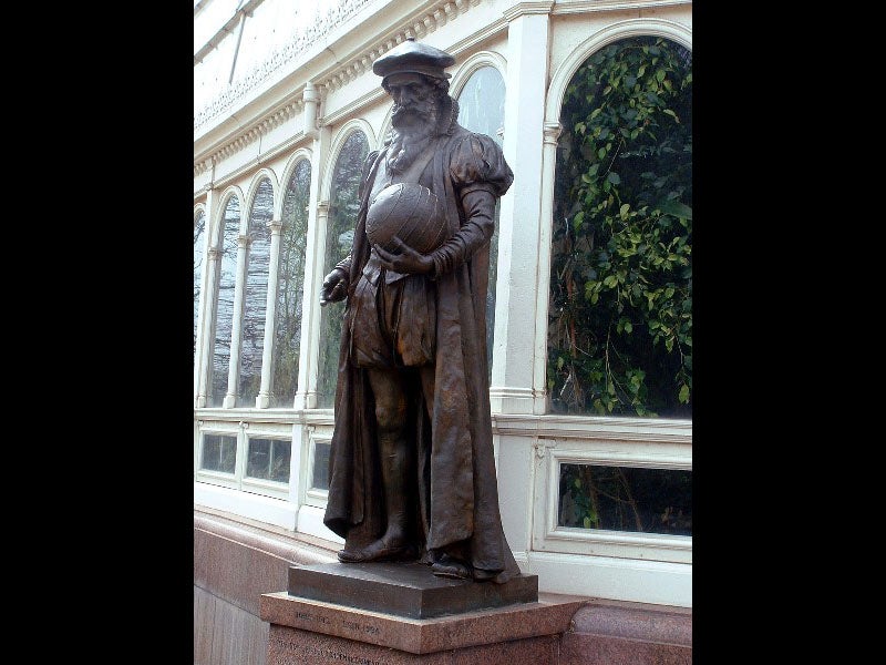 The portrait of Mercator, at age 42, was engraved by his good friend and fellow cartographer, Frans Hogenberg (first image). There is a handsome bronze statue of Mercator by Léon-Joseph Chavalliaud outside the Sefton Park Palm House in Liverpool (fifth image).