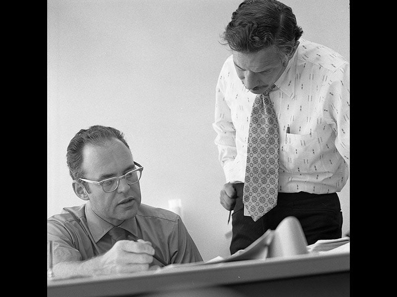 Moore, by the way, not only made predicted his law, he helped make it happen, as he and Robert Noyce, who developed some of the first integrated circuits (Noyce is on the right in the photo above, with Moore on the left) co-founded Intel Corporation in 1968.