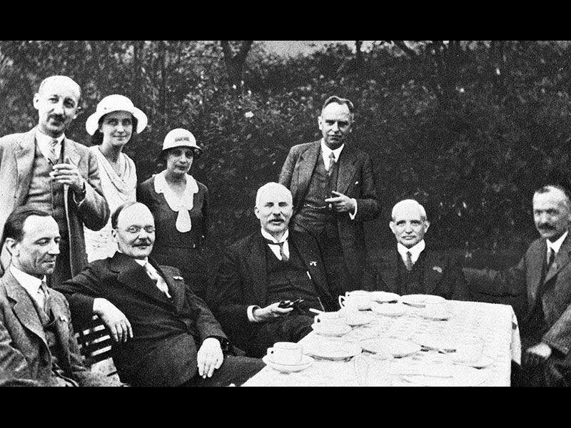 Later, Geiger and Walther Müller turned Geiger’s early crude particle counter into a very useful detection device, and we see above a Geiger-Müller tube of 1932 (second image). Geiger was certainly in good company in a group photograph of the same year (third image), where Geiger (second from left in front) is surrounded by James Chadwick, discoverer of the neutron (extreme left); Rutherford (to Geiger’s right), and Lise Meitner (behind Geiger) and Otto Hahn (behind Rutherford), who would split the atom in 1938. But Geiger’s career and reputation went downhill after 1932, at least outside Germany. He seems to have been caught up in the fervor for a "German science" in the 1930s, and his ties with other Western scientists were gradually severed. Hans Bethe recalled that when he lost his job in Tübingen in 1933, he appealed to Geiger (a professor at Tübingen) for help, and Geiger turned his back on him. It is revealing that when physicist George Gamow wrote his folksy history of early twentieth-century physics, Thirty Years that Shook Physics (1966), he did not so much as mention Geiger anywhere. Somewhere along the line, Geiger lost the respect of his colleagues and disappeared from their accounts of the birth of atomic and nuclear physics.