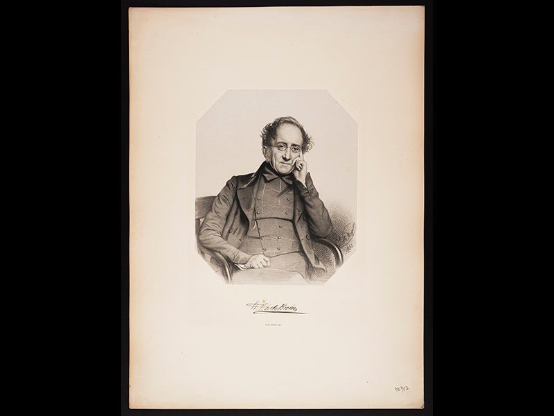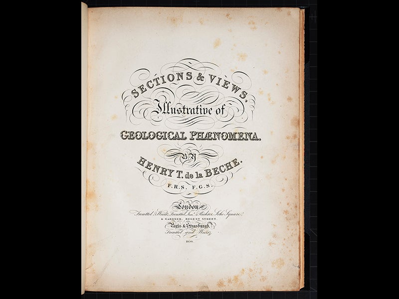 The portrait of De la Beche above is also a lithograph, but it was done in 1851 by Thomas Maguire, who did a whole series of portraits of scientists around this time. Maguire’s portrait of De la Beche is the only one the Library owns—we acquired it because we thought it would be nice to have a lithograph of a lithographer.
