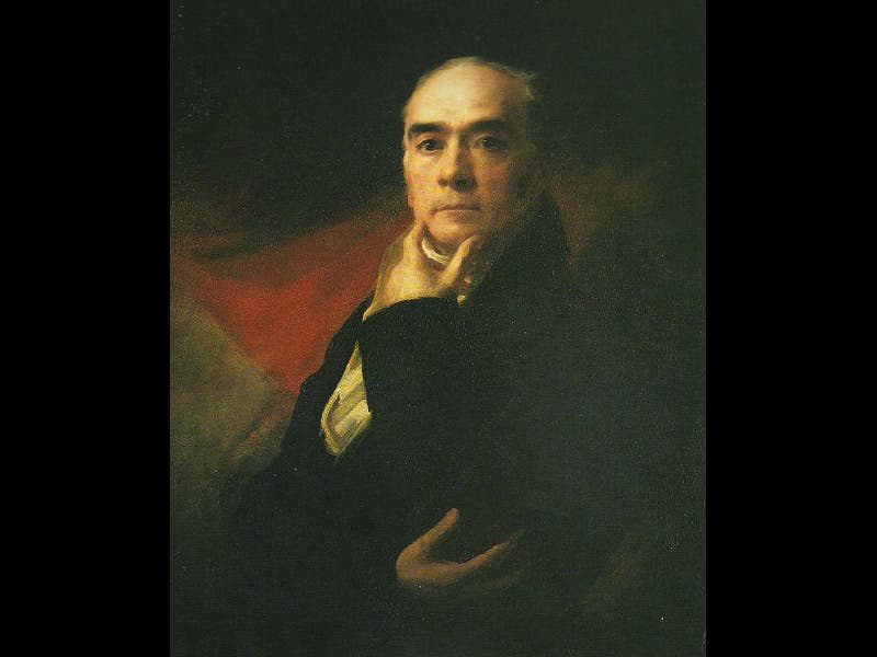 So what is a Scottish portraitist doing in a scientific anniversary? It happens that Raeburn painted more famous scientists than nearly any other artist we can think of. For example, one of Scotland's most distinguished geologists was James Hutton, who proposed around 1785 that the earth's crust formed very slowly, over long periods of time, going through a nearly endless cycle of erosion and uplift. Hutton came to Edinburgh after a life of farming and met the likes of Joseph Black, the great chemist and authority on heat. Hutton published his Theory of the Earth in 1795, illustrated by his friend, John Clerk of Eldin. After Hutton's death, his geological views were promoted by another Scottish friend, John Playfair. And if I wanted to tell this story with images, I would be in good stead, for Raeburn painted Hutton (second image), Playfair (third image), and Black (fourth image; only the engraving made from Raeburn’s portrait is available). Raeburn didn't paint Hutton’s friend, John Clerk the artist, but he did paint his son, John Clerk the judge, and since the son was a dead ringer for his Dad, our portrait gallery is nearly complete (fifth image).