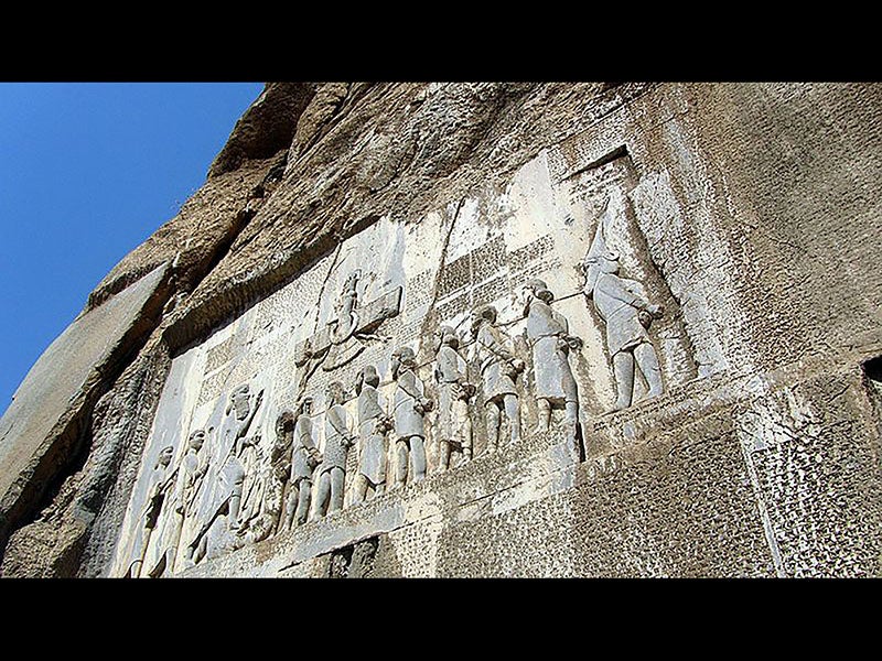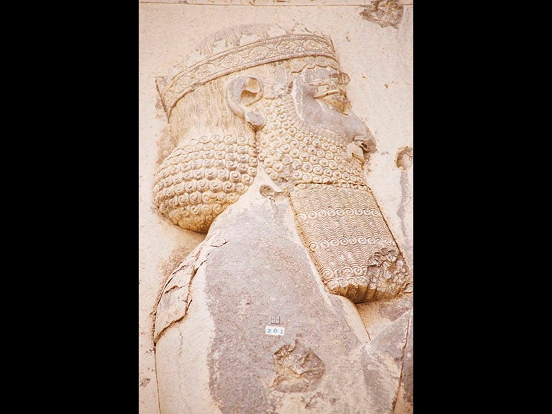 The Behistun inscription was declared a World Heritage Site in 2006. The WHS listing uses the modern Iranian spelling of the location, Bisotun. The first photo on the WHS site (and fifth image above) shows a detail of the carved head of Darius. If you look carefully, you will notice that his carefully coifed beard is an insert--carved on a separate block of stone and then placed into a cutout in the rock. Did Darius change his beard style midway through the carving, necessitating some editorial revision? No one knows.