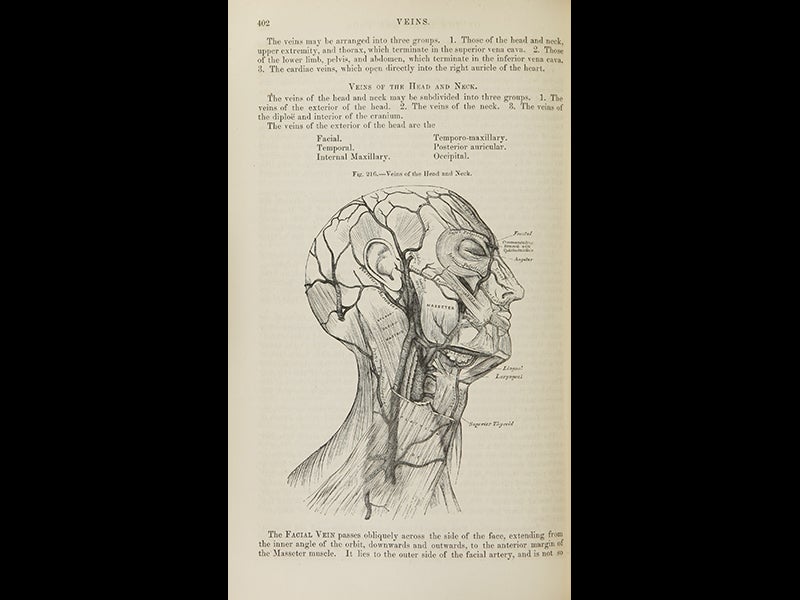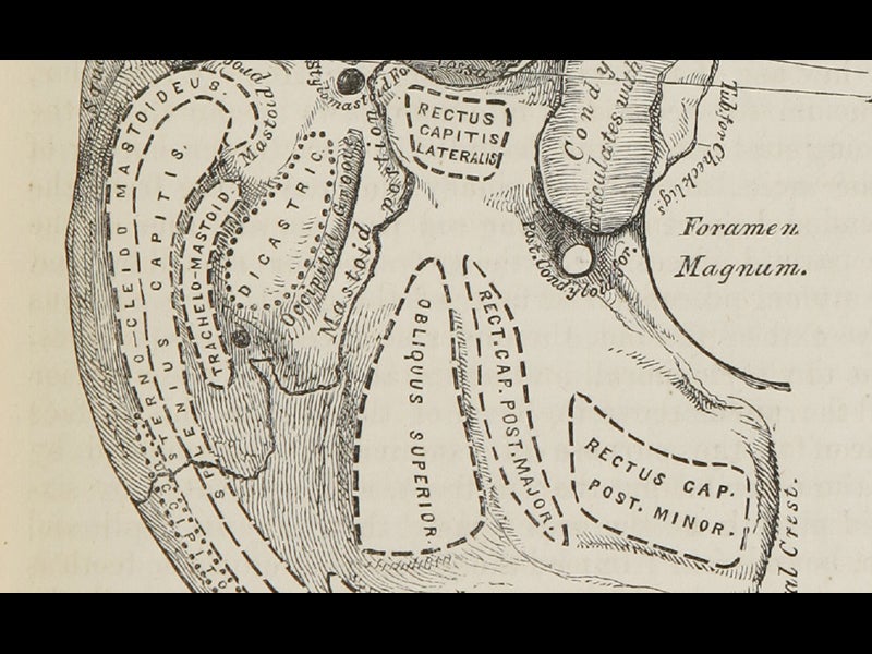 Henry Vandyke Carter, an English physician, surgeon, and artist, was born May 22, 1831. For two years, in 1856 and 1857, Carter labored night and day to produce 363 exquisite anatomical drawings which he drew directly on boxwood blocks ready for the wood engraver. The illustrations were intended to accompany a new anatomy text, written by his friend and fellow instructor at St. George's Hospital in London, Henry Gray. Because of a misunderstanding, most of the blocks were too big for their intended pages, and they had to be shaved, at great expense, and their engraved captions replaced with smaller type-set captions, which almost capsized the entire project. But the book finally appeared in September of 1858. The title on the title page was Anatomy, Descriptive and Surgical. The spine, however, said Gray's Anatomy, and Gray's Anatomy it has been ever since. The feature that endeared the book to students was the clarity of Carter's wood engravings, which were far superior to most anatomical illustrations before and since. But poor Carter got very little credit for his vital contribution, thanks mostly to Gray, who sent back the proofs of the title page and demanded that the font size for Carter’s name be reduced and his titles removed. In most modern editions of the book, Carter’s name doesn’t even appear. Perhaps the muse of justice arranged it so that Gray died in 1861, before he could enjoy much of his misappropriated fame, while Carter lived another 40 years and had quite a successful career. We do not have any edition of “Carter’s” Anatomy in the Library, ostensibly because human anatomy is out of scope for our collections, but since we have an exceptional collection of the history of scientific illustration, and since Carter played a major role in that history, one might think a case could be made for the acquisition of the first edition. The illustrations above are from the copy of the first U.S. edition (1859) at the National Library of Medicine and depict, in order: the base of the skull, the aorta, the veins of the skull, and the articulation of the pelvis. In addition, we include a detail of the base of the skull, so you can appreciate Carter’s ability to draw forth clarity from anatomical chaos. Dr. William B. Ashworth, Jr., Consultant for the History of Science, Linda Hall Library and Associate Professor, Department of History, University of Missouri-Kansas City. Comments or corrections are welcome; please direct to ashworthw@umkc.edu.
