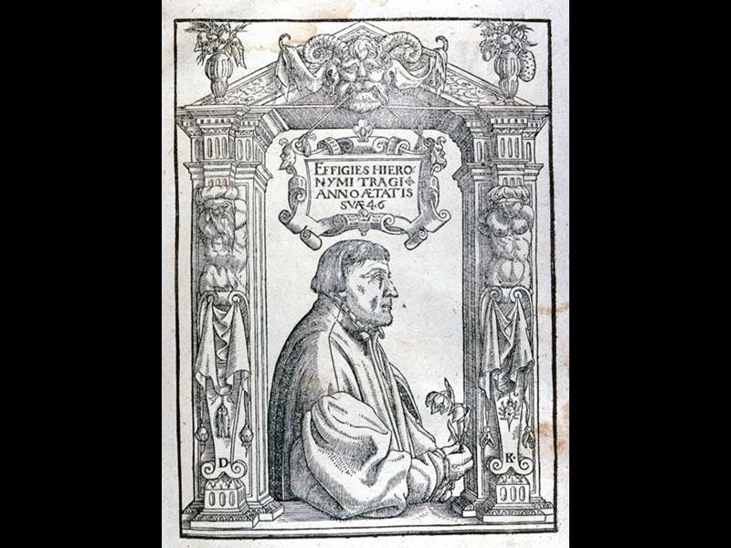Our library has a 1552 printing of De stirpium. The frontispiece is a woodcut portrait of Bock (fifth image).