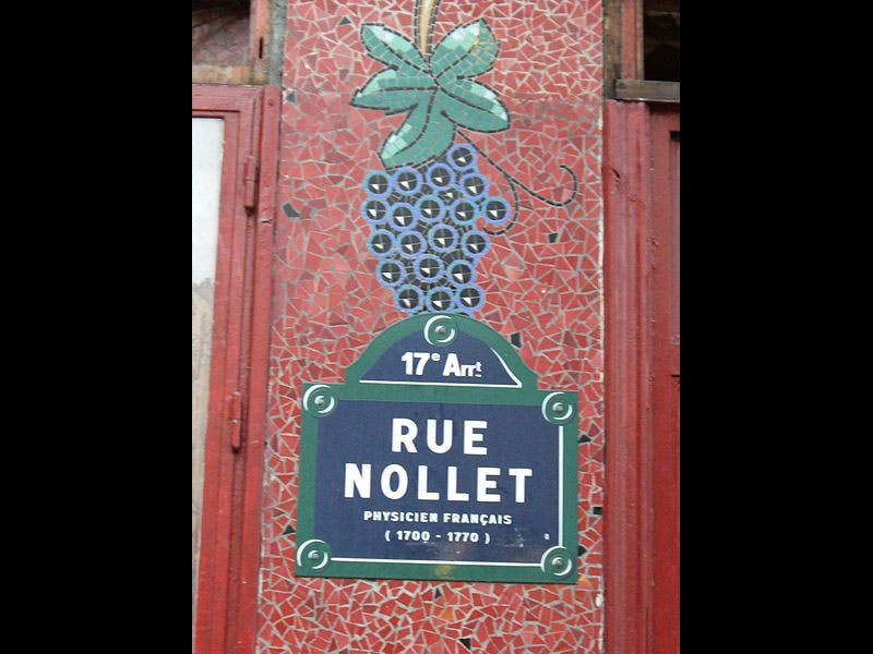 Nollet has a street named after him in Paris. That by itself is not really noteworthy—nearly everyone French has a street named after them in Paris—but Nollet’s has an especially attractive mosaic street marker (sixth image).