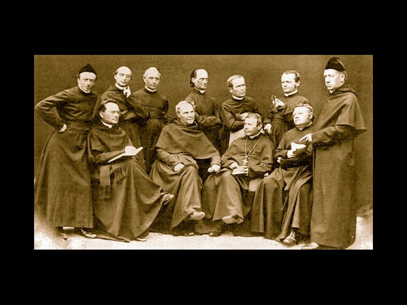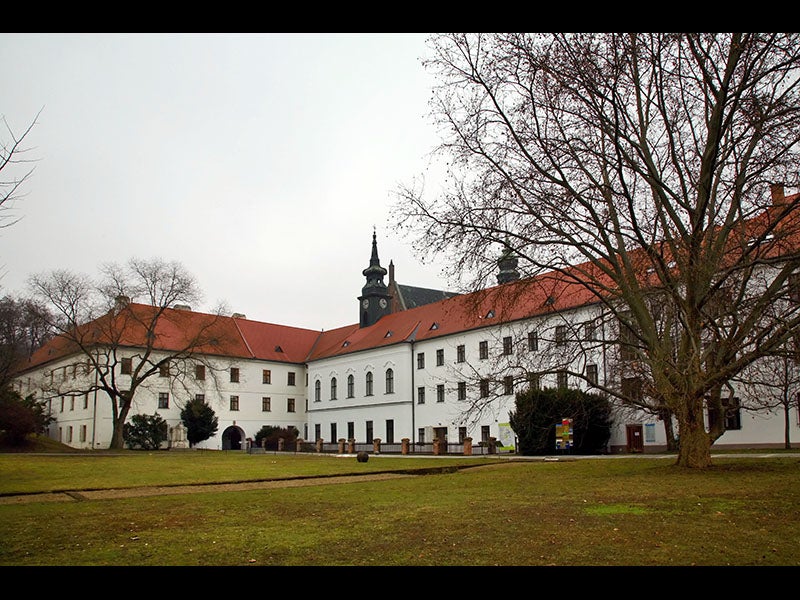 Mendel is well appreciated in his native land. The statue (first image) is outside one of the entrances to the still-thriving abbey of St Thomas in Brno (second image). There are several photographs of Mendel, but the most charming is a group photo of all the monks (third image), Mendel (second from the right in the back row) clutching a plant, while everyone else holds textbooks. The postage stamp (fourth image) was issued by Austria in 1984, during the centennial of Mendel’s death.