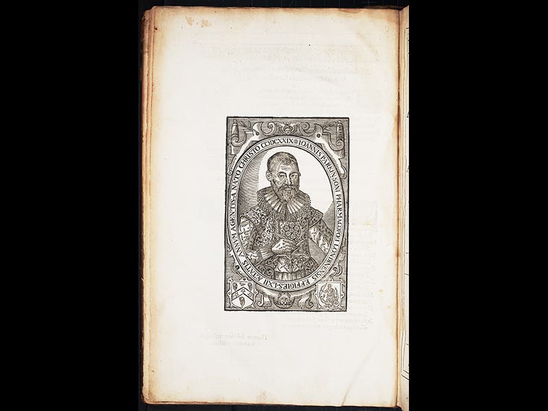 The title of the book is playful as well, since it means "Park in sun's terrestrial paradise," a pun on Parkinson's name. The book also contains a portrait of Parkinson, which we include as our last image.