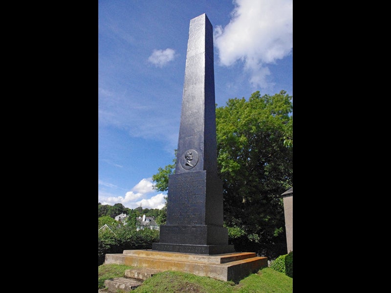 John Wilkinson, an English ironmaster and machine-tool maker, died July 14, 1808, at the age of 80. Wilkinson helped kick-start the industrial revolution in England when he established the Bersham Ironworks in 1762. Bersham is near Wrexham, which is on the English-Welsh border, about 30 miles northwest of Shrewsbury, Charles Darwin's home town. Wilkinson soon became one of the major iron providers in England, establishing production facilities in various industrial cities, including Birmingham. Wilkinson was one of the three men responsible for erecting in 1779 the first cast-iron bridge in the world, called appropriately Iron Bridge, spanning the River Severn just southeast of Shrewsbury (first image). A single building remains from the original Bresham works, but it does still stand, if barely (second image). Wilkinson was crazy about iron, and before his death, he had a cast iron memorial obelisk fashioned, which still survives in Cumbria (third image). He also had an iron casket made, but it has disappeared, along with Wilkinson's mortal remains.