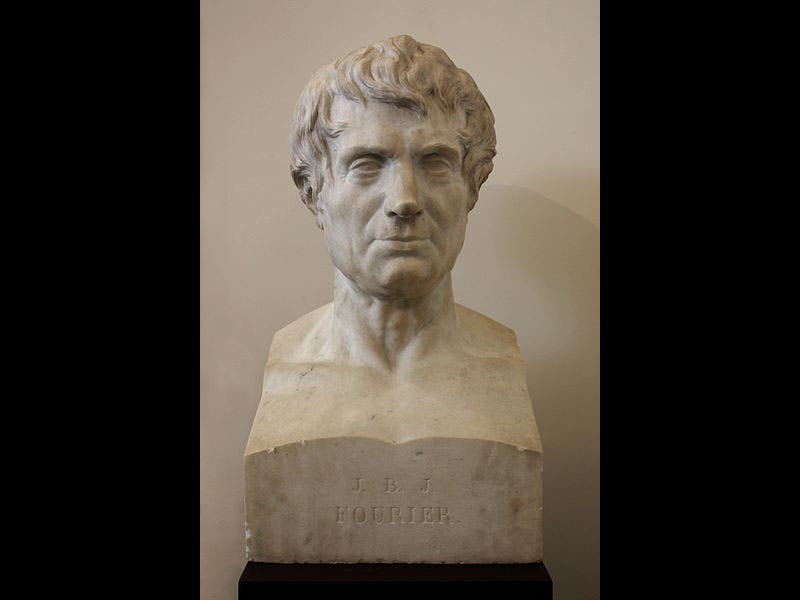 Jean-Baptiste Joseph Fourier, a French mathematician and physicist, was born Mar. 21, 1768. Fourier was one of the three principal scientific advisors to Napoleon when he outfitted his expedition to Egypt in 1798. Fourier, who taught at the new French engineering school, the Ecole Polytechnique, was responsible for selecting all the student engineers who did so much of the surveying in Egypt, and who discovered and drew most of the famous antiquities. We see above a portrait of the young Fourier, sketched while he was in Egypt (first image). Afterwards, Fourier became a favorite of Emperor Napoleon, so that when Napoleon fell in 1815, Fourier had a rough time with the new regime, even though it was apparent that he was one of the best mathematicians in France.