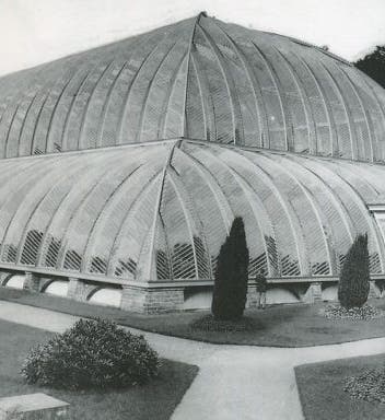 Sir Joseph Paxton, an English gardener and architect, was born Aug. 3, 1803. When still a young man, Paxton was hired by William Cavendish, the 6th Duke of Devonshire, to oversee the restoration of the gardens at the family estate of Chatsworth, in Derbyshire. Paxton made the Chatsworth gardens one of the grandest in the world. In 1841, he completed the "Great Stove," a huge football-field-sized greenhouse, which at the time was the largest glass building in the world (see first image above). Charles Darwin visited Paxton and Chatsworth in 1845. Another construction at Chatsworth was the Lily House, built specifically to shelter the world's largest water lily, Victoria amazonica (called Victoria regia in Paxton's day). Not only did he house the lily, he coaxed it into flowering, the first time anyone had done so outside of South America (second image).