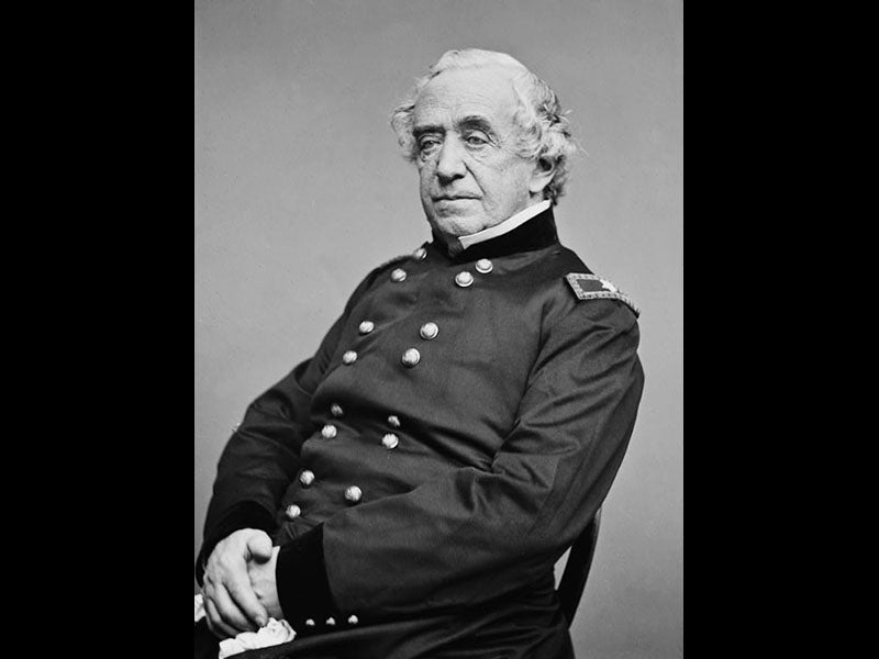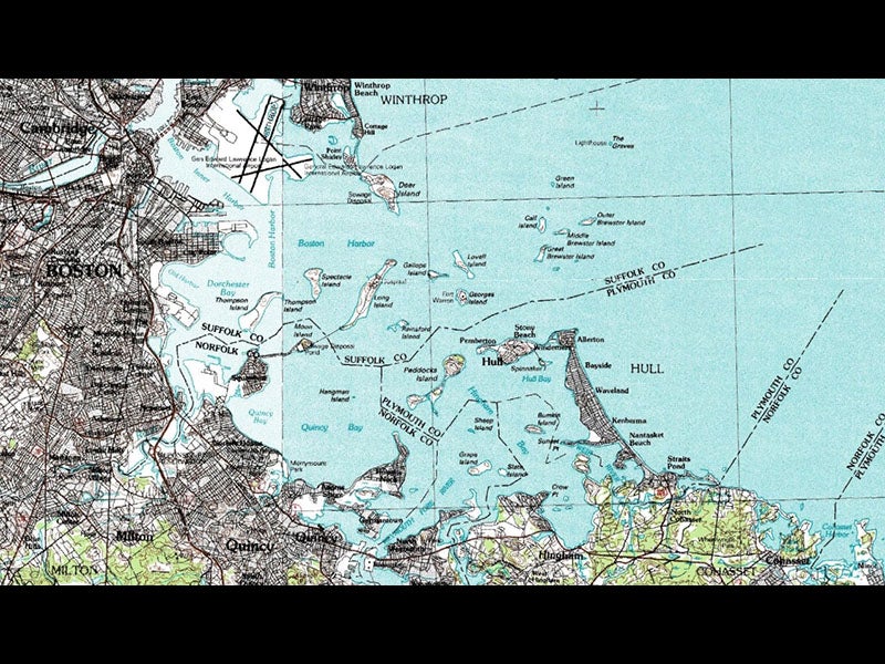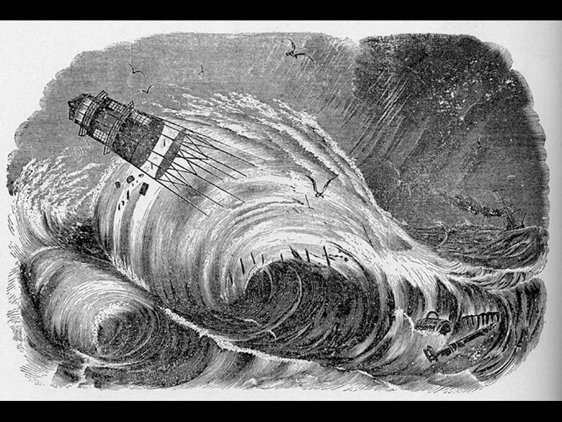 General Joseph Gilbert Totten, an American civil engineer, was born Aug. 23, 1788 (fourth image). Totten had been chief engineer of the U.S. Army for some years when he was called upon to design a new lighthouse for Minot's Ledge, a tiny shelf of rock on the southeast rim of Boston Harbor, about 1 mile north and offshore of the towns of Minot and Cohasset (second image; Minot and Cohasset are in the extreme lower right corner of the map). The area was quite dangerous to shipping, and so a beacon of some sort was necessary, but the first lighthouse, an iron structure that was put in place in 1850, lasted for only one year before storms tore it (and its two helpless keepers) from the rocks (third image). Totten was assigned to design a replacement, and he took his cue from the Eddystone lighthouse, built almost exactly a century earlier in the English Channel. Inspired by Eddystone, Totten decided that Minot's Ledge needed a stone structure, with the stones dovetailed together and further strengthened by iron rods, and kept in place by its own massive weight (see a series of elevations and sections, fifth image). The problem is that Minot's Ledge is underwater most of the time, and the initial work could only be accomplished at low tide from a heaving ship.