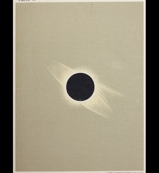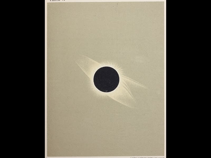 Ball was the Royal Astronomer of Ireland and director of Dunsink Observatory in Dublin (which Bloom mentions several times by name, planning to visit). Ball didn't discover anything earth-shaking as an astronomer, but his popular writings were very successful; his Story of the Heavens went through many editions, and it is surmised that Joyce (Bloom) used the 1905 edition, since Bloom mentions the nova of 1901, which was first discussed by Ball in 1905. We have six editions of The Story of the Heavens in our History of Science collection, including the first of 1885 and the 1905 edition used by Joyce. Our 1901 edition has been digitized, and the images above are drawn from the digital version. One of them depicts a total solar eclipse, a foretaste of our own upcoming Aug. 21, 2017 event; the others depict the comet of 1882, a detail of a sunspot, and the great nebula in Andromeda. Ball was our Scientist of the Day on July 1, 2016; you will find more images from Story of the Heavens there.