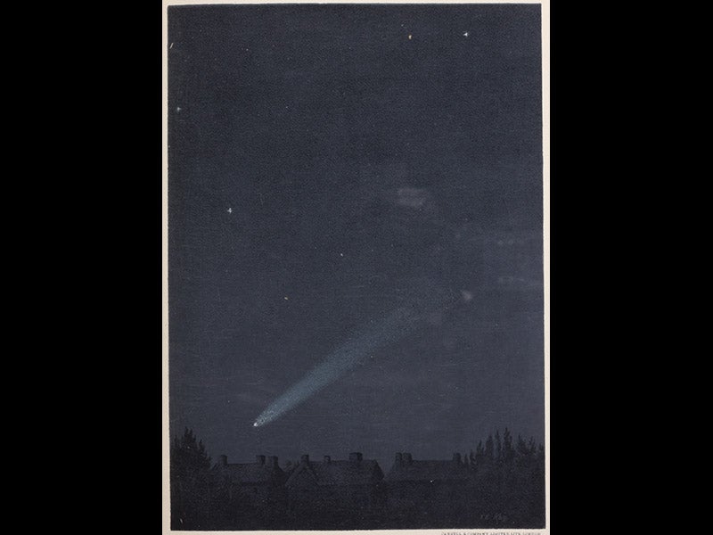 June 16, 1904 was the day on which Leopold Bloom wandered around Dublin and recorded his impressions of life, love, and the city, as set down in James Joyce's Ulysses (1922; second image). We now celebrate June 16 as Bloomsday. One of the many curious side-threads of the novel is Bloom's interest in stars and constellations, and in such astronomical phenomena as parallax. Bloom derived his knowledge of comets and stars (and parallax) from a book by an Irish astronomer, Robert Stawell Ball, The Story of the Heavens (1885). We don't have to infer this; Bloom is quite explicit about it. Early on, as he walks along the Liffey, he mentions Ball by name (the result of a bit of wordplay, naturally, as he is noticing the timeball having fallen at the ballasthouse), and we learn shortly from a minor character that Bloom once bought a copy of Ball's book at a bookstall. Later, in the penultimate chapter, the Ithaca episode, when Bloom and Stephen Daedalus walk outside into “the heaventree of stars hung with humid nightblue fruit,” Bloom suddenly gushes forth a stream of astronomical knowledge gathered from Ball, about Orion and Sirius and spiral nebulae and Kepler’s period law and Tycho’s new star and all manner of cosmological tidbits. And when, shortly thereafter, we get a catalogue of Bloom’s library, there, with When We Were Boys and Thoughts from Spinoza, is “The Story of the Heavens by Sir Robert Ball (blue cloth).”
